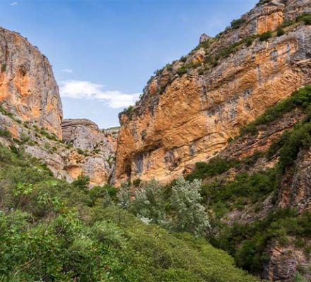 We take a drive out to a viewpoint called Portiacha from where we get fantastic views of some of the highest mountains in the Pyrenees as well as down into the Vero Canyon. From there we hike back to Alquezar. Our route takes us past three sets of neolithic cave paintings dating from 3,000 BC to 22,000 BC. We cross several canyons the final one being the Rio Vero where we can take a swim before the ascent to Alquezar. An excellent and very varied hike.
